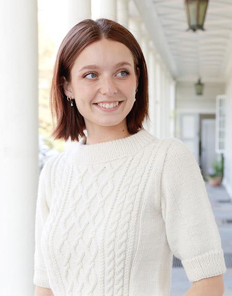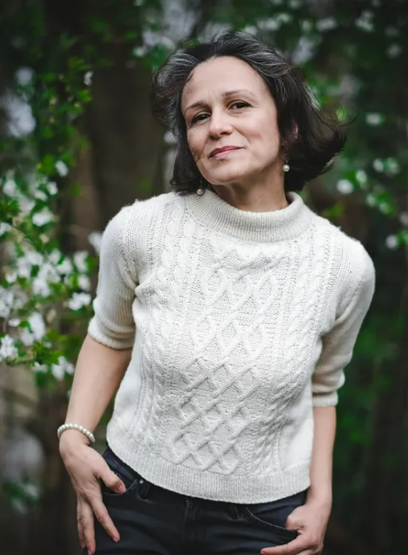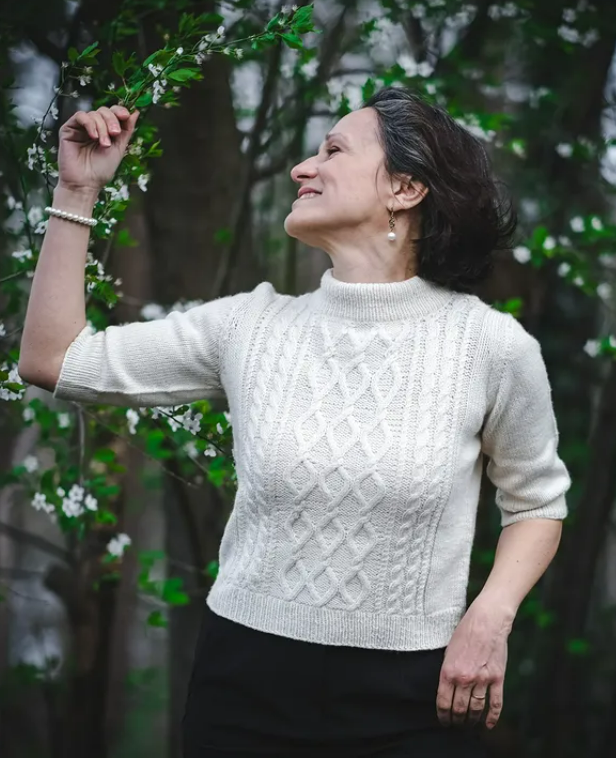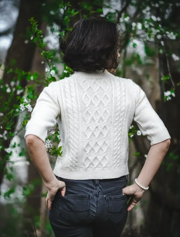 Work sleeve in the round on needle, then finish sleeve cap back and forth on needle.