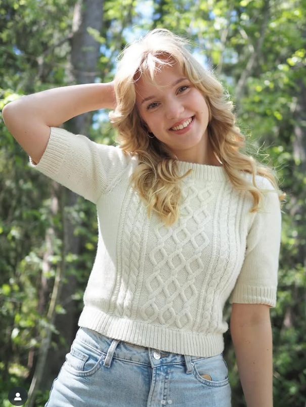 Then finish the piece back and forth on needle while AT THE SAME TIME casting off for sleeve cap the beginning of every row as follows: Cast off 2 stitches 3 times in each side, 1 stitch 4-6-8-10-14-18 times in each side = 42-38-36-38-34-30 stitches remain, then cast off 2 stitches at the beginning of every row until sleeve measures 30-30-31-31-32-32 cm.