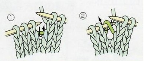 Как делать универсальный накид перед и после регланных линий (также так делать накиды, которые идут один за другим при вязании Японского узора, см. выше):