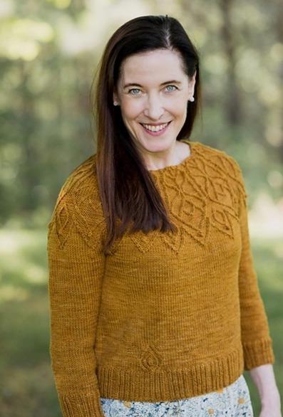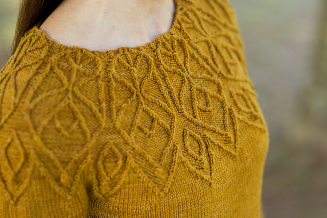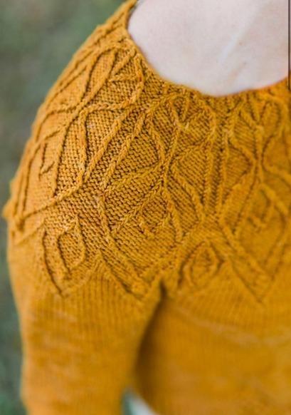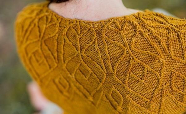 Этот пуловер с круглой кокеткой связан сверху вниз одной деталью.