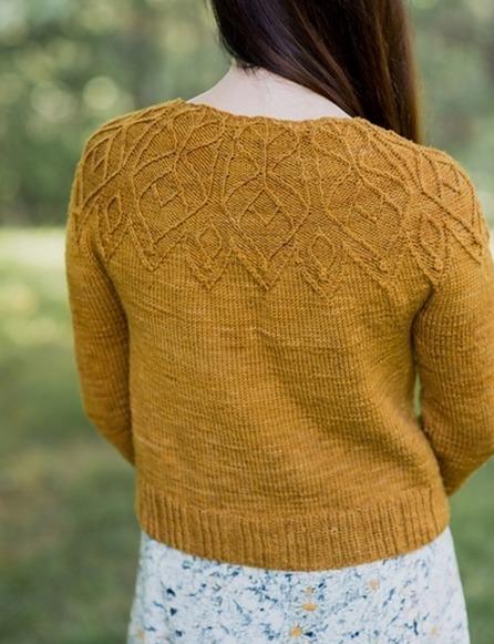 Горловину спинки формируют укороченными рядами и формирования реглана провязывают после того, как узор кокетки будет закончен.