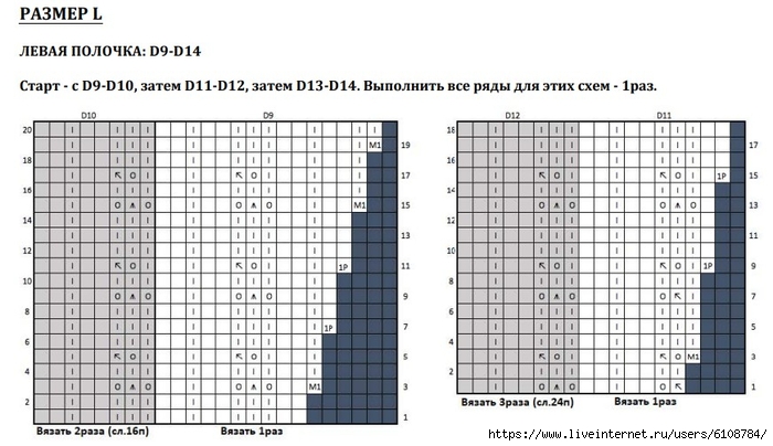 Размер L - вязать по Схемам D1-D16, C1