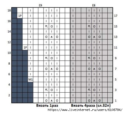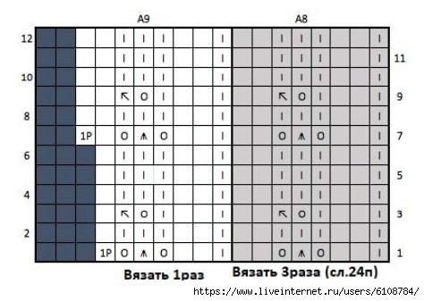 Вязать по схемам: A10-A11 (A10-A11) C9-C10 (D9-D10) E10-E11.