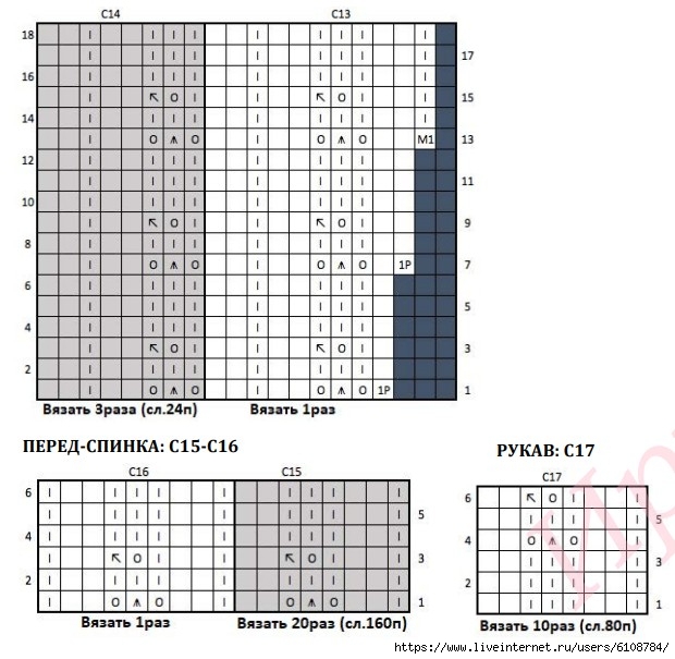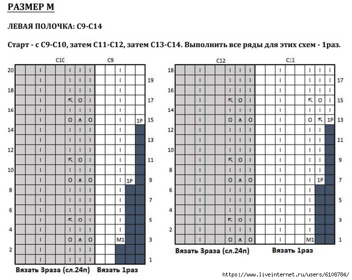 Размер M - вязать по Схемам C1-C17.