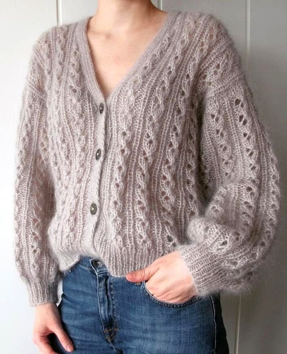 Кардиган из мохера спицами