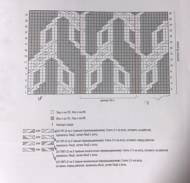 📏 Раппорт узора: 20 петель × 28 рядов.