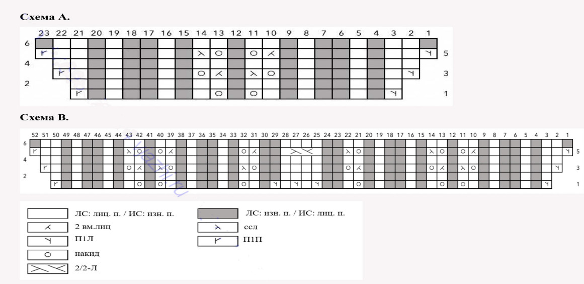 Финальным провязанным рядом будет Ряд 16 (20, 24, 28)(32, 6, -)(-, -) Схем A1 и B1.