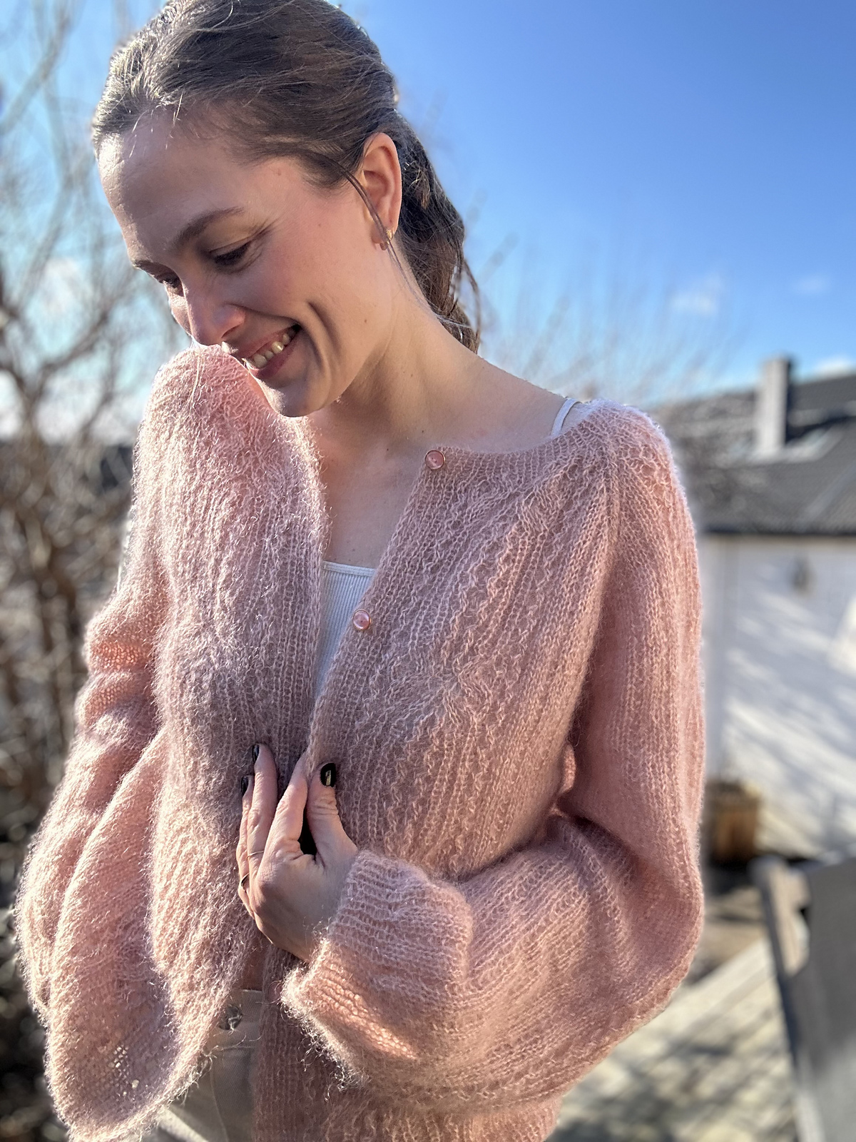 Заправьте все концы нитей. Заблокируйте кардиган по финальным измерениям.