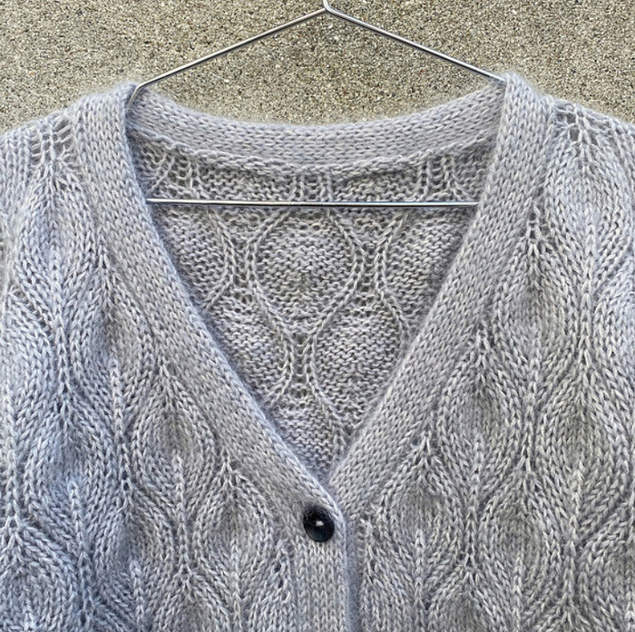 Кардиган Olive с V-образным вырезом относится к коллекции моделей с узорами Olive, которые демонстрируют сплошной ажурный узор с краями резинкой. Вязаный сверху вниз, без швов, из 1 нити мериноса, сложенной вместе с 2 нитями нежного мохера на шелке, он мягкий, легкий и воздушный – прямо как облако. Этот кардиган имеет, как следует из названия, глубокий V-образный вырез горловины и ажурный узор с листьями Olive. Двойная планка дополняет элегантный ажурный узор по всей длине.