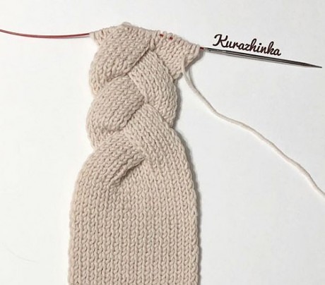 Итак, нам понадобится: один моток пряжи bbb full и спицы 3,5. Набираем 33 пели и вяжем резинкой 1*1 на высоту 17 см. Далее делим вязание на три части по 11 петель и каждую часть вяжем отдельно ( я вязала одновременно от разных клубков) на высоту 15 см: Теперь плетём косу Объединяем вязание и вяжем далее единым полотном на высоту ещё 17 см. Петли не закрываем, оставляем длинный конец для сшивания. Для выполнения незаметного шва, открытые петли повязки делим пополам следующим образом. На дополнительную спицу снимаем все лицевые петли. Работу переворачиваем и на вторую дополнительную спицу снимаем все лицевые петли. Как должно получится. Теперь с помощью иглы соединяем концы повязки. Сначала с лицевой стороны, затем с изнаночной. Ну вот и все, два-три часа свободного времени и стильный аксессуар на весну готов. Автор описания kurazhinka