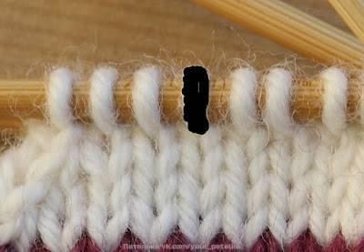 Так вот, провязывать нужно не её, а ту, что под ней,отмечено чёрным на следующей картинке.