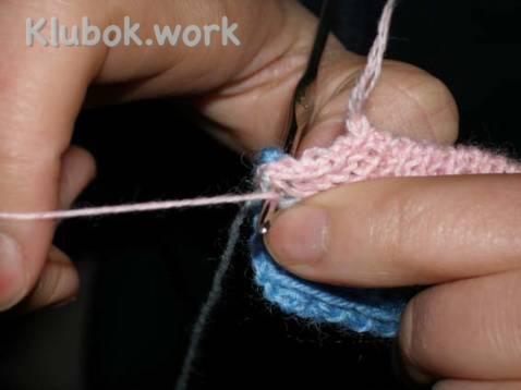 .По краю прокладываем тамбурный шов крючком контрастной нитью (это важно и удобно для дальнейшей работы).