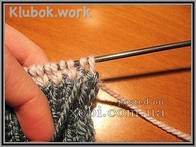 .КАК СПРЯТАТЬ ПРОТЯЖКИ НИТОК ПО КРАЯМ ВЯЗАНИЯ Klubokhttp://klubok.work/1/203/7430/Klubokhttps://klubok.work/css/image/top-logo-en.pngКАК СПРЯТАТЬ ПРОТЯЖКИ НИТОК ПО КРАЯМ ВЯЗАНИЯ Вам знакома такая проблема Как спрятать протяжки ниток по краям вязания смотрите на пошаговом фото на примере полосатого шарфа. Ниже смотрите мк и пошаговое фото. Итак, вяжем шарфик с полосками двух цветов серый и розовый. Первую петлю нового ряда просто снимаем. Вторую провязываем обеими нитками. Так мы ввели розовую пряжу. Оставшийся ряд провязываем уже только рабочей (розовой) пряжей. Потом вяжем второй ряд тоже только рабочей пряжей. Но останавливаемся, не довязав 2 петли. Нерабочая (серая) нить, должна быть спереди, как на фото ниже. Тогда ее надо перекинуть назад. Нити должны располагаться, как на фото ниже. Далее провязываем еще одну петлю, как обычно и только розовой пряжей (лицевая петля). При провязывании последней петли ряда нужно прижать нерабочую нить рабочей к полотну. Для этого нити надо перекрестить, при этом нерабочая нить должна находиться над рабочей, как показано на фото ниже. Далее провязываем последнюю петлю (она всегда изнаночная) только рабочей нитью. Разворачиваем вязание и видим такую картину Перекидываем нерабочую нить назад, чтобы нити располагались вот так А дальше, снова перекрещиваем нити, как ранее и снова провязываем петлю рабочей нитью. Прятать нерабочую нить таким образом надо каждый раз, когда вы провязываете петли у края вязания, на котором осуществляется переход между цветами. В итоге край выглядит следующим образом Таким образом, протяжка находится как бы внутри полотна, а не с краю. Конечно, нитка прячется не идеально, но довольно незаметно. А самое главное - конца всего 4.