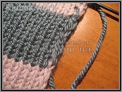 КАК СПРЯТАТЬ ПРОТЯЖКИ НИТОК ПО КРАЯМ ВЯЗАНИЯ Вам знакома такая проблема Как спрятать протяжки ниток по краям вязания смотрите на пошаговом фото на примере полосатого шарфа. Ниже смотрите мк и пошаговое фото. Итак, вяжем шарфик с полосками двух цветов серый и розовый. Первую петлю нового ряда просто снимаем. Вторую провязываем обеими нитками. Так мы ввели розовую пряжу. Оставшийся ряд провязываем уже только рабочей (розовой) пряжей. Потом вяжем второй ряд тоже только рабочей пряжей. Но останавливаемся, не довязав 2 петли. Нерабочая (серая) нить, должна быть спереди, как на фото ниже. Тогда ее надо перекинуть назад. Нити должны располагаться, как на фото ниже. Далее провязываем еще одну петлю, как обычно и только розовой пряжей (лицевая петля). При провязывании последней петли ряда нужно прижать нерабочую нить рабочей к полотну. Для этого нити надо перекрестить, при этом нерабочая нить должна находиться над рабочей, как показано на фото ниже. Далее провязываем последнюю петлю (она всегда изнаночная) только рабочей нитью. Разворачиваем вязание и видим такую картину Перекидываем нерабочую нить назад, чтобы нити располагались вот так А дальше, снова перекрещиваем нити, как ранее и снова провязываем петлю рабочей нитью. Прятать нерабочую нить таким образом надо каждый раз, когда вы провязываете петли у края вязания, на котором осуществляется переход между цветами. В итоге край выглядит следующим образом Таким образом, протяжка находится как бы внутри полотна, а не с краю. Конечно, нитка прячется не идеально, но довольно незаметно. А самое главное - конца всего 4.