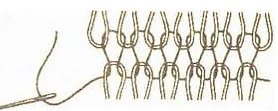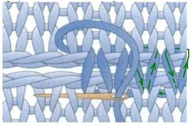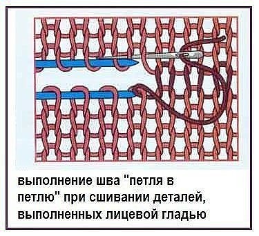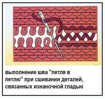 Соединение деталей, трикотажные швыKlubokhttp://klubok.work/1/203/7865/Klubokhttps://klubok.work/css/image/top-logo-en.pngГоризонтальный трикотажный шов: (шов "петля в петлю") а) Используется для соединения деталей чулочного вязания за открытые петли. Не нарушает структуру вязаного полотна и сохраняет его эластичность. При сшивании швом "петля в петлю" на полотне всегда образуется дополнительный ряд. Если, например, вяжут узор с раппортом в 4-ре ряда, то на одной детали вяжут два ряда (видим готовый ряд и ряд на спице), а на второй детали вяжут только 1 ряд, петли на спицах при соединении дадут нам 4-й ряд раппорта. Открытые петли обеих деталей располагают друг против друга и сшивают их справа налево по лицевой стороне нитью того же цвета и толщины, которой вязали детали. Для этого: иглу вводят снизу вверх с изнаночной стороны на лицевую в 1-ю петлю нижнего ряда затем - сверху вниз с лицевой стороны на изнаночную в 1-ю петлю верхнего ряда и сразу же выводят ее снизу вверх в рядом стоящую 2-ю петлю верхнего ряда вводят иглу сверху вниз с лицевой стороны на изнаночную в 1-ю петлю нижнего ряда и сразу же выводят ее снизу вверх в рядом стоящую 2-ю петлю нижнего ряда. Затем - сверху вниз во 2-ю петлю верхнего ряда, а выводят ее в рядом стоящую 3-ю петлю и т.д. Петли шва должны быть такого же размера, как петли полотна. Только при этом условии шов будет абсолютно незаметен. Если сшиваемые детали связаны резинкой 1х1, то при соединении можно использовать тот же способ. Для этого расположив петли друг против друга, соединяют между собой только лицевые петли, пропуская изнаночные. Затем поворачивают изделие изнаночной стороной к себе и сшивают оставшиеся петли тем же швом (по изнанке они лицевые). При сшивании со спицы ввести иглу движением снизу вверх сначала в кромочные петли нижней и верхней деталей. После этого ввести иглу движением сверху вниз в кромочную петлю нижней детали и вывести движением снизу вверх из следующей петли. Затем снять 2-ю петлю со спицы. Вводить иглу попеременно то верхней то нижней детали и выводить из следующей, лежащей на спице петли. После чего не сильно туго затягивают нить. Петли на спице и шов образуют новый ряд на связанном полотне. На деталях, связанных изнаночной гладью, петли сшивают, выводя иглу движением не снизу (с изнанки) вверх (на лицевую сторону), а сверху (с лицевой стороны) вниз (на изнанку) и наоборот. б) по открытым петлям продольного и по кромкам поперечного полотна деталей Детали сшивают справа налево по лицевой стороне горизонтальным трикотажным швом, вводя иглу в открытые петли одного полотна и захватывая дуги петель, расположенных рядом с кромочными, другого полотна. Такое соединение используют, например при вшивании рукавов в проймы в) по закрытым кромочным петлям Расположить детали напротив друг друга лицевой стороной вверх и закрепить их. Выполнить шов равномерно подтягивая нить, чтобы сохранить одинаковую высоту лицевых петель у шва.