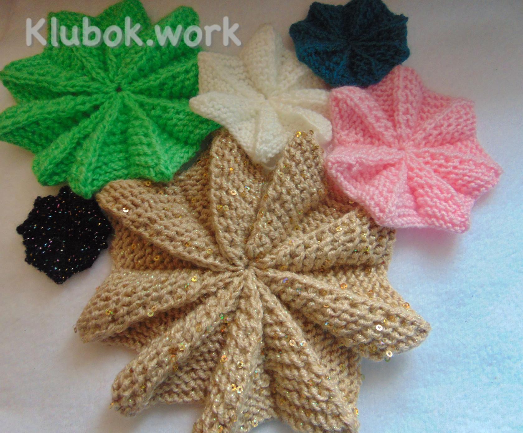 Цветок-украшение на шапочкуKlubokhttp://klubok.work/1/203/8232/Klubokhttps://klubok.work/css/image/top-logo-en.pngНабрать кол-во петель кратное 14 + 1 петля для симметрии + 2 кромочные. на 10 лепестков : 140+1+2=143 петли. 1 ряд- кр., 7 лиц.,1 изн., * 13 лиц., 1 изн.* от * до * повторить 9раз. В конце ряда 7 лиц., кром. 2 ряд- кр., 1 изн., * накид, 5 лиц.,3 вместе лиц. ( центральная петля сверху), 5 лиц., накид, 1 изн.,* От * до * повторять до конца ряда., кром. 3 и 5 ряды- вязать как 1-ый ряд. 4 ряд- вязать как 2 -ой ряд. 6 ряд- кром., * 1 изн., 5 лиц., 3 вместе(ЦП сверху), 5 лиц.,* От * до * повторять 10 раз. в конце ряда 1 изн., кром. 7 ряд- кром., 6 лиц.,* 1 изн., 11 лиц.,* От * до * повторять 9 раз. в конце ряда 1 изн., 6 лиц., кром. 8 ряд- кром., * 1 изн., 4 лиц., 3 вместе(ЦП сверху), 4 лиц.,* От * до * повторять 10 раз. в конце ряда 1 изн., кром. 9 ряд- кром., 5 лиц., * 1 изн., 9 лиц.,* От * до * повторять 9 раз. в конце ряда 1 изн., 5 лиц., кром. 10 ряд - кром., *1 изн., 3 лиц., 3 вместе(ЦП сверху), 3 лиц.,* От * до * повторять 10 раз. в конце ряда 1 изн., кром. 11 ряд- кром., 4 лиц., * 1 изн., 7 лиц.,* От * до * повторять 9 раз. в конце ряда 1 изн., 4 лиц., кром. 12 ряд- кром., *1 изн., 2 лиц., 3 вместе(ЦП сверху), 2 лиц.,* От * до * повторять 10 раз. в конце ряда 1 изн., кром. 13 ряд- кром., 3 лиц., * 1 изн., 5 лиц.,* От * до * повторять 9 раз. в конце ряда 1 изн., 3 лиц., кром. 14 ряд- кром., *1 изн., 1 лиц., 3 вместе(ЦП сверху), 1 лиц.,* От * до * повторять 10 раз. в конце ряда 1 изн., кром. Оставшиеся петли стянуть. Край цветка сшить Пришить пуговичку и...