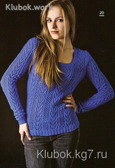 Синий пуловер спицами