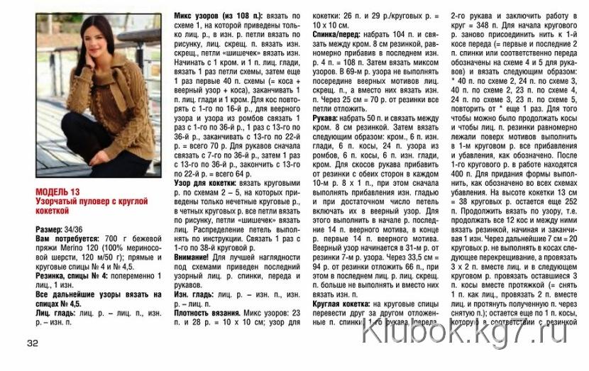 Красиво: пуловер с круглой кокеткой спицами