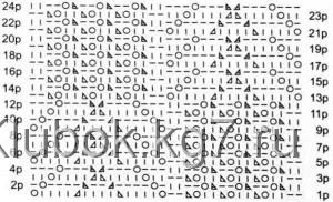 Связав образец ажурным узором, рассчитайте необходимое количество петель, рядов и убавок по выкройке. Для красивой состыковки боковых швов число петель узора должно быть кратно 34 + 16 петель для симметрии узора + 2 кромочных.
