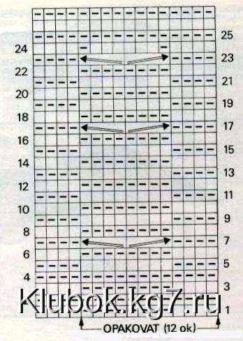 The pattern “Diamonds” The number of stitches is a multiple of 4, plus 1 stitch. Row 1 — purl. Row 2 — knit. Row 3—*3 purl, 1 slip with a yarn over*, 1 purl. Rows 4-6 — according to the pattern, the slipped stitch is slipped again, adding one yarn over each time. Row 7 — *3 purl, knit together the stitch with 4 yarn overs, *1 purl. Row 8 — knit. Row 9 — purl, *1 slip with a yarn over, 3 purl*. Rows 10-12 — according to the pattern, slipping the slipped stitch again. Row 13 — 1 purl,* knit together the stitch with 4 yarn overs, 3 purl*. Repeat from row 2.