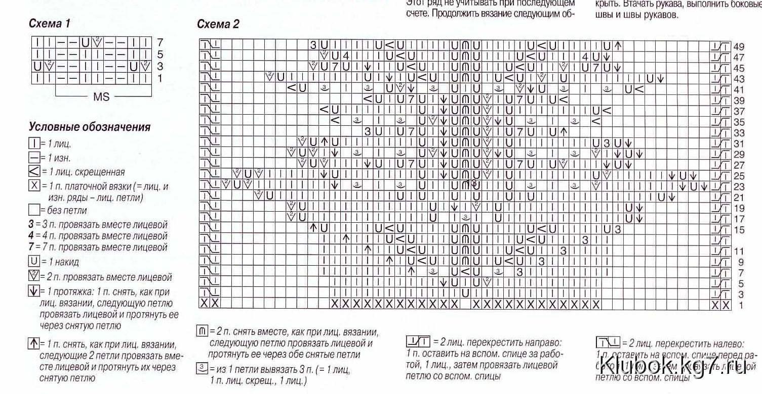 Узор «плетенка» Набрать петли от середины листиков и связать 5 длинных полос по 7 петель, потом их ПЕРЕПЛЕСТИ т.е. положить полосочки в скрещенном виде и приколоть их булавочками на выкройку(я выкройку ложу на плоскую подушечку), а потом пришить прикосновения плетенки к рядом лежащим, уже связанным, боковую часть и горловину *это треугольничек связанный шахматкой*. И только тогда закрыть последний ряд в полосках. Потому что, полоскам требуется разная длина. Плетенка (ширина 38 п.): вязать по схеме, каждую из 6 полос вязать отдельной нитью, не перекрещивая нити; 13-й р.: повторять раппорт с 1-го р. Плетенка (ширина 38 п.): вязать по схеме, каждую из 6 полос вязать отдельной нитью, не перекрещивая нити; 13-й р.: повторять раппорт с 1-го р.