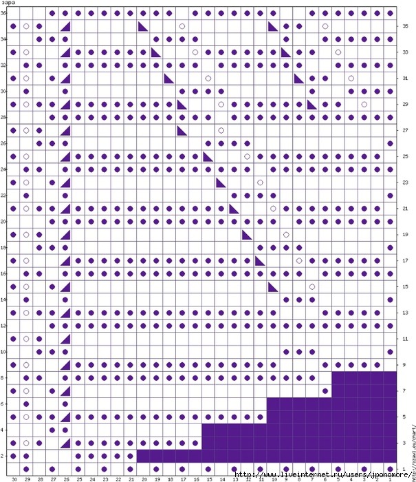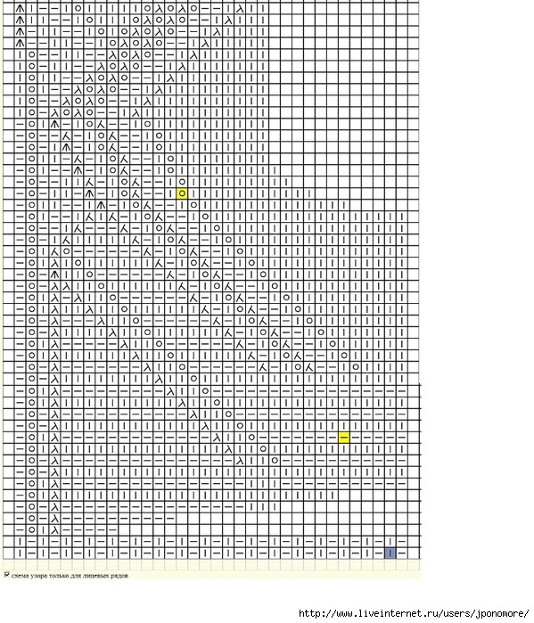 Lace pattern: knit according to the pattern, in purl rows knit stitches according to the chart.