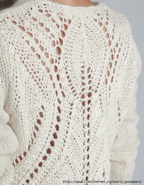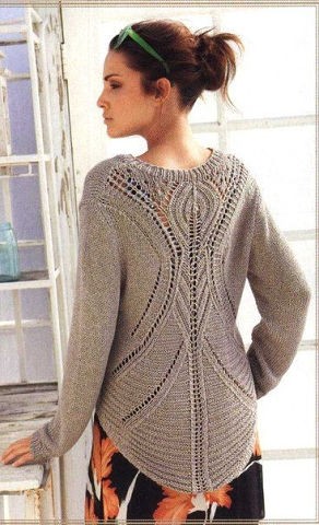 A luxurious knitted pullover with a V-neck hides a mystery, as the front is simple and concise, but the back reveals a pleasant surprise - a lovely lace pattern. You will be delighted with this model!