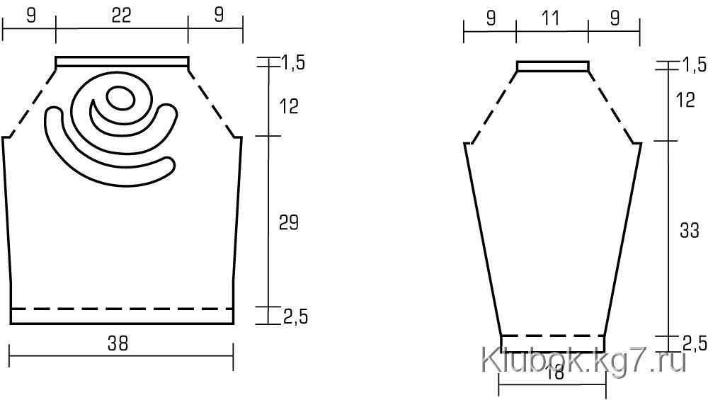To get a product one size larger/smaller than specified, you need to add/subtract 2 cm (5 sts.) in width and 2 cm (6 rows) in length.