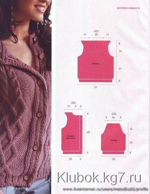 A cardigan knitted with knitting needles.