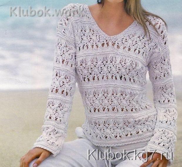 Нежность белой пряжи завораживает! Интересный ажурный пуловер