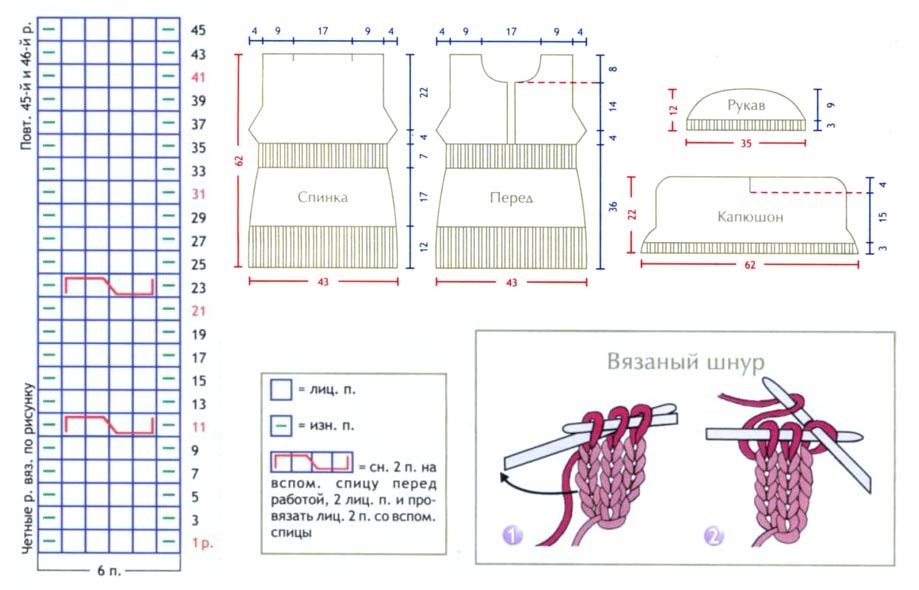Резинка 2?1: вязать попеременно 2 лиц. п., 1 изн. п. Изн. р. вязать по рисунку.