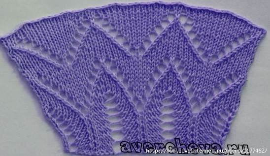 В схеме указаны только лицевые ряды, в изнаночных рядах все петли вязать по рисунку. Накиды вязать изнаночными.