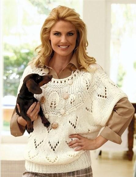 Плотность вязания: узор с косами, круговые спицы № 6: 17 п. и 24 р. = 10 × 10 см.