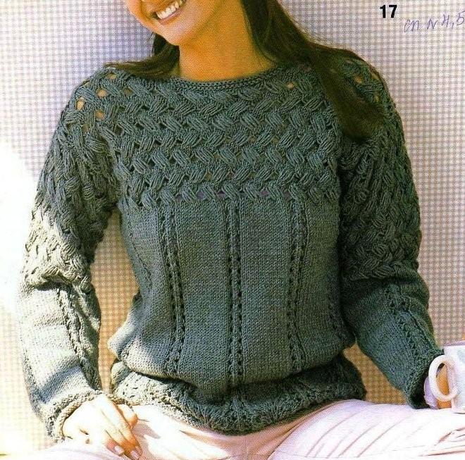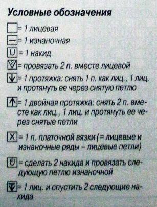 Плотность вязания. Ажурный узор: 20 п. и 25 р. = 10 х 10 см; плетеный узор: 20 п. и 15 р. = 10 х 10 см.