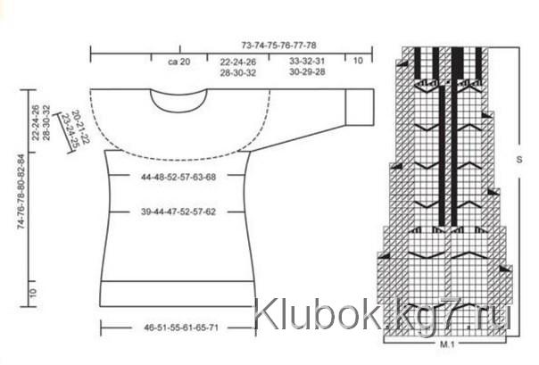 Узор: см. схему М.1 для своего размера. Модель вяжется по кругу.