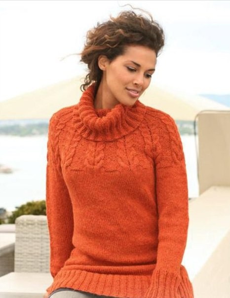 вам потребуется: Drops Nepal (65% шерсть; 35% альпака; 75 м / 50 г) 750-850-950-1050-1150-1250 г цвет 2920т, оранжевый обоюдоострые и круговые спицы (40 + 80 см) размер 5 мм обоюдоострые и круговые спицы (80 см) размер 4.5 мм - для резинки