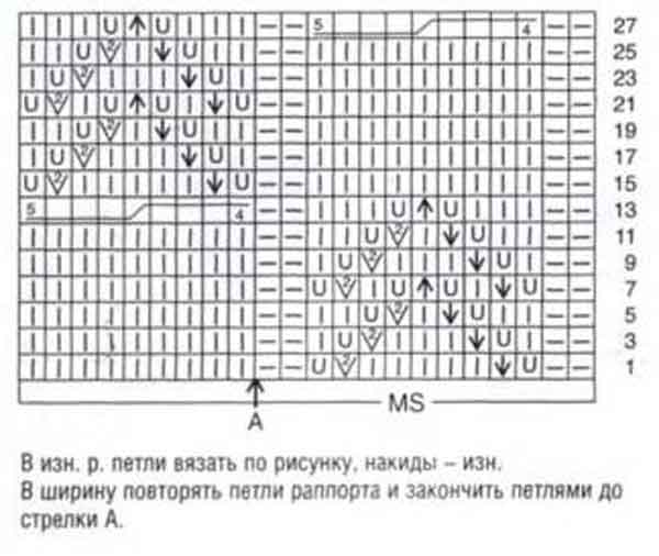 В ширину повторять петли раппорта и закончить петлями до стрелки А.