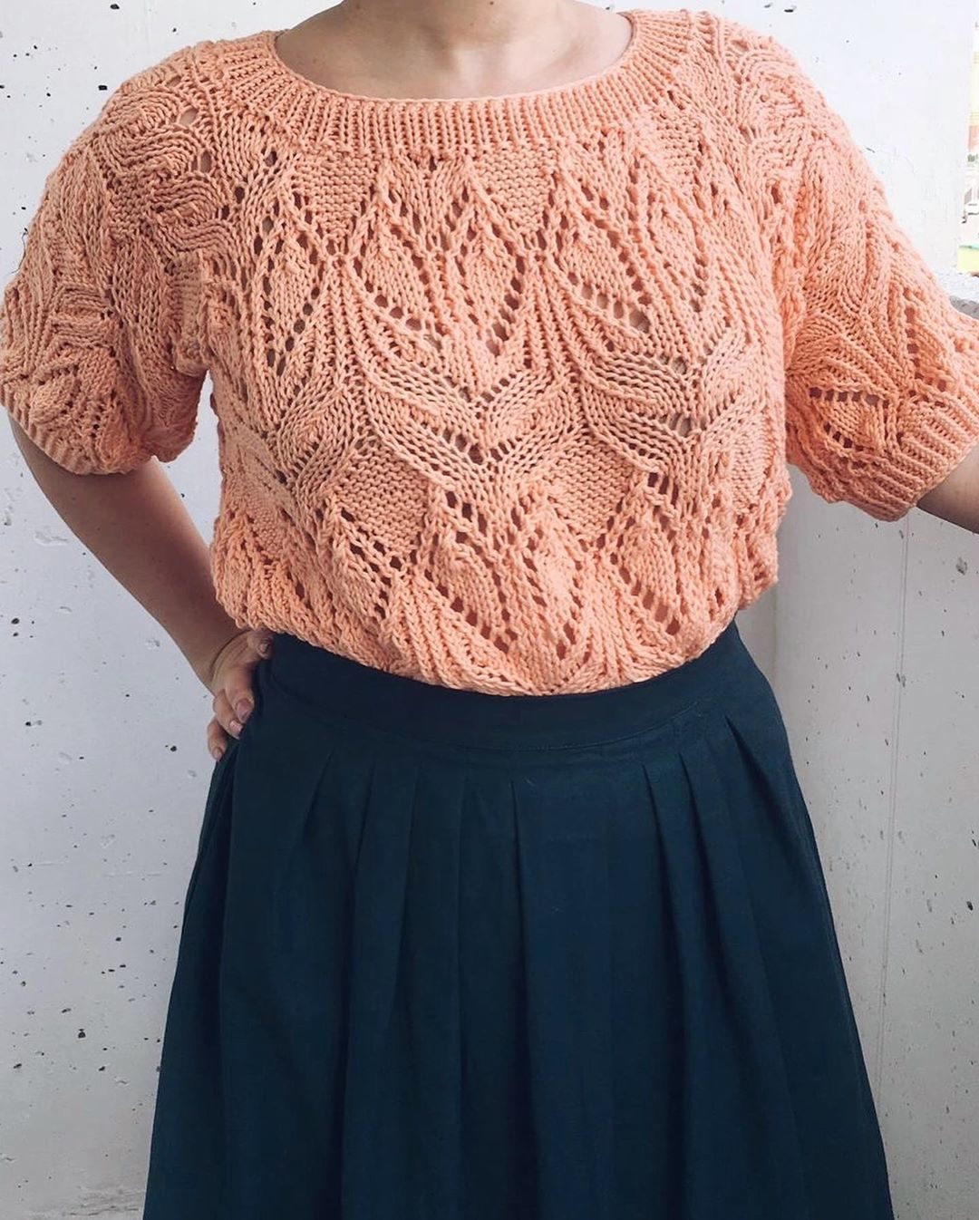Популярный свитер спицамиKlubokhttp://klubok.work/1/3/7803/Klubokhttps://klubok.work/css/image/top-logo-en.pngЭто схема вязания спицами с ажурным узором (напоминающим листья или цветы), с раппортом 38 петель и 24 ряда. Читается снизу вверх, справа налево — как обычно для лицевых рядов.