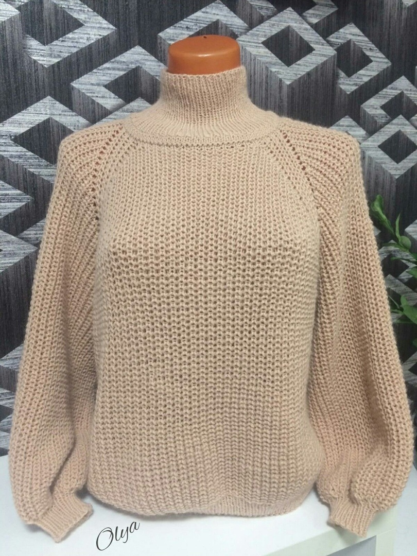 Свитер женский спицами. Реглан сверху. Краткое описание