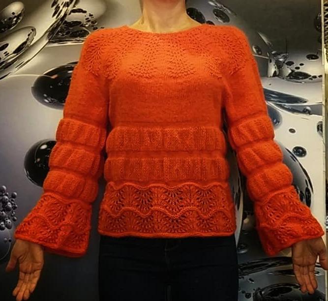 Ажурный свитер . Автор Т. ПетруньKlubokhttp://klubok.work/1/3/8619/Klubokhttps://klubok.work/css/image/top-logo-en.pngСхема кокетки