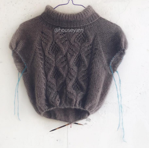 На данном этапе на рукавах должно быть по 21 петле, на спинке 36 п, на передней части 34 п.