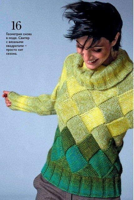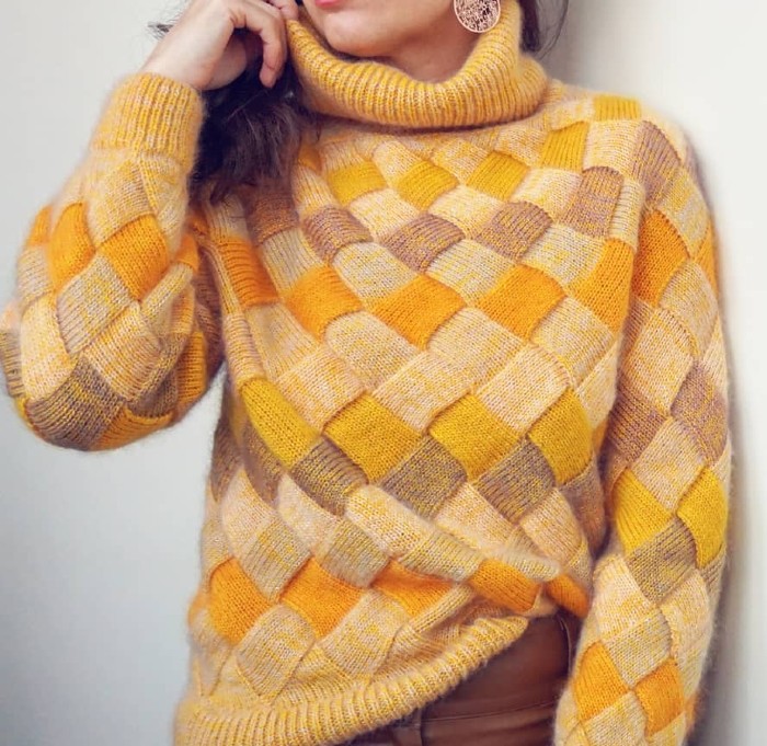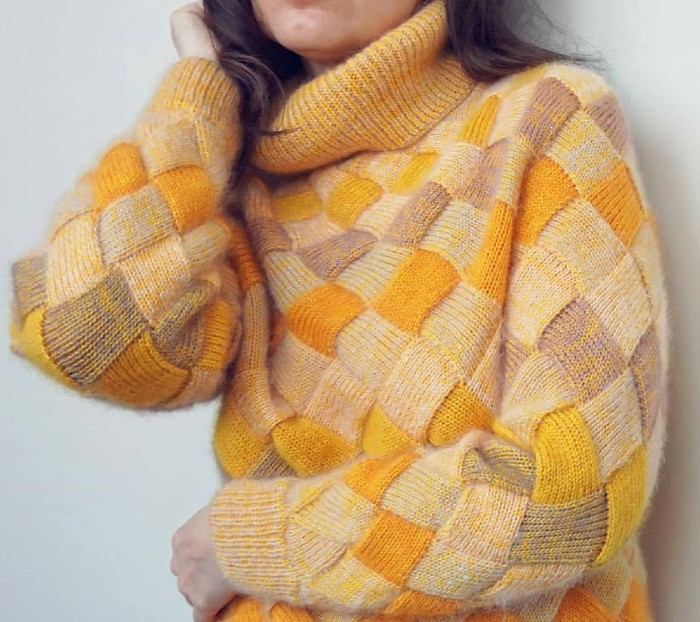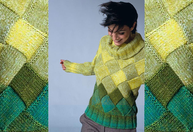 Свитер спицами в технике энтерлак