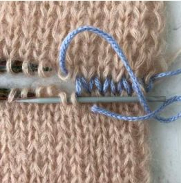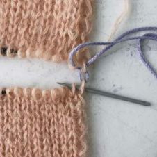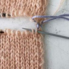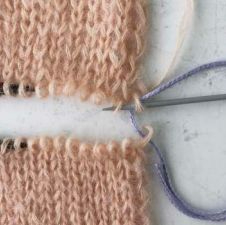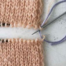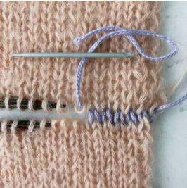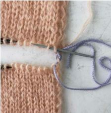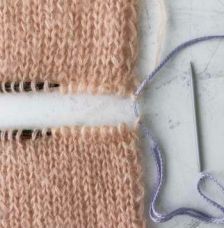 Открытые петли рукавов можно соединить с проймами джемпера также трикотажным швом. Принцип соединения такой же как в плечевых швах. Такой шов выглядит, как представлено на фото справа.