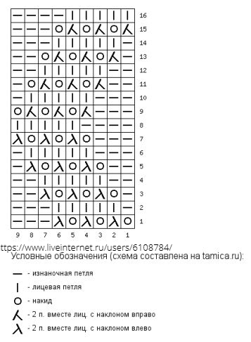 Узор «Волны 2» для кругового вязания (Раппорт состоит из 9 петель и 16 рядов):