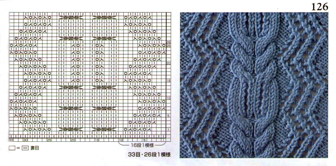 Узор «Косы» для кругового вязания (Раппорт состоит из 15 петель и 26 рядов):