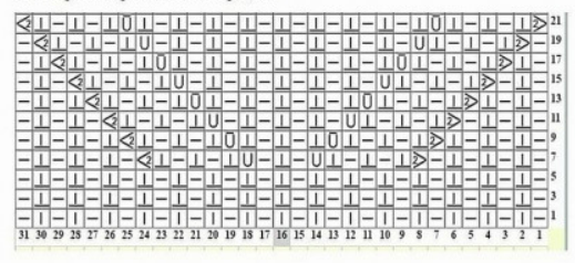 (Следует схема с 1 по 31 петлю и с 1 по 21 ряд)