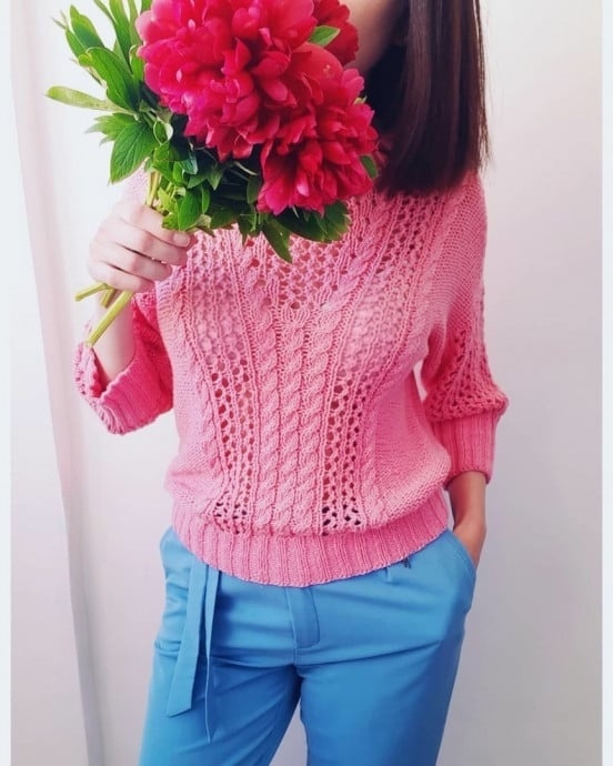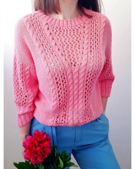 Розовый пуловер спицамиKlubokhttp://klubok.work/1/3/8974/Klubokhttps://klubok.work/css/image/top-logo-en.pngСвязан из в одну нить изнаночной гладью с узором по переду и рукавам. На размер 44-46 (s-m) ушло около 6,5 моточков (315 гр.). Плотность вязания 1,3 петли х 2,3 ряда на спицах №5 изнаночной гладью. Необходимы спицы №5 и №4, маркеры при необходимости.