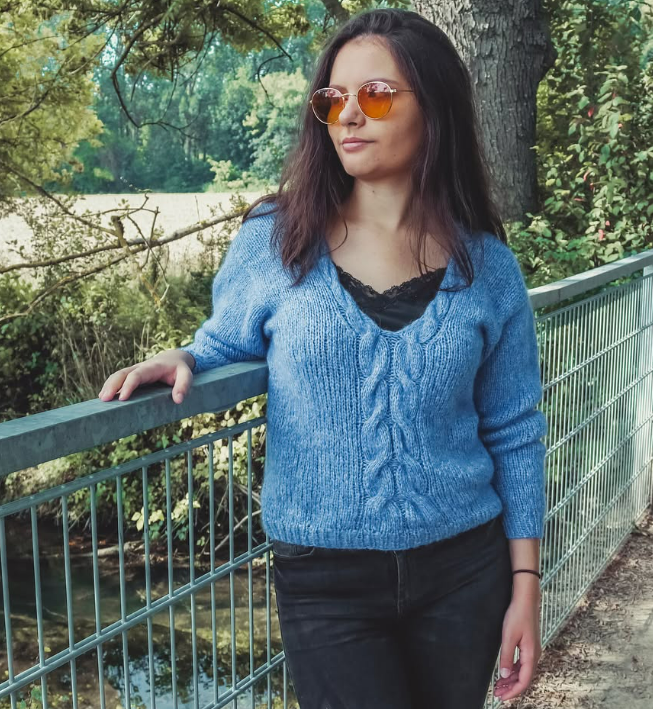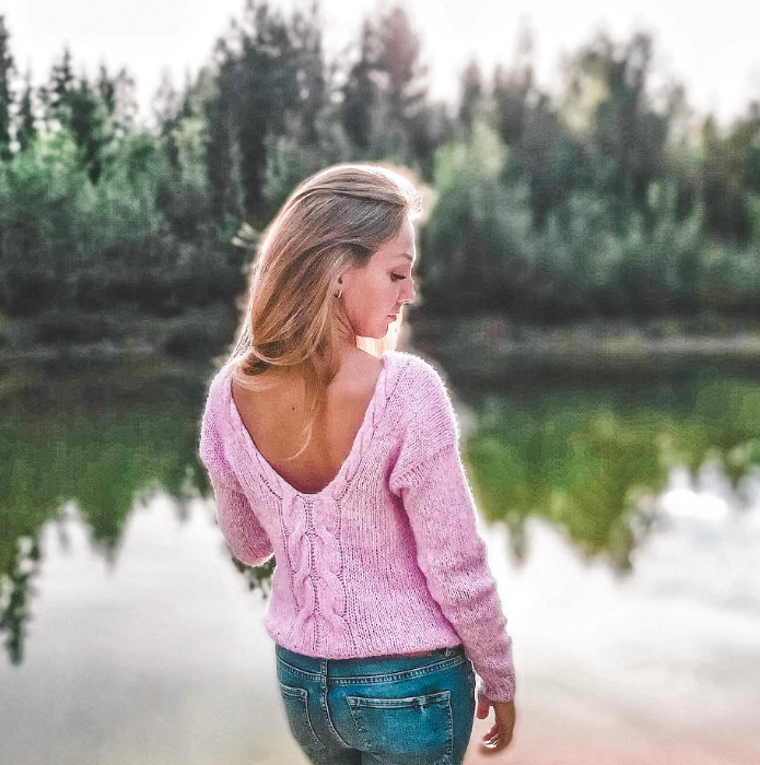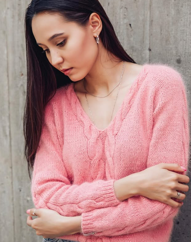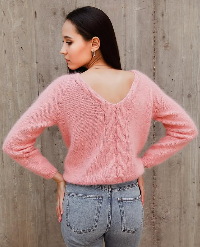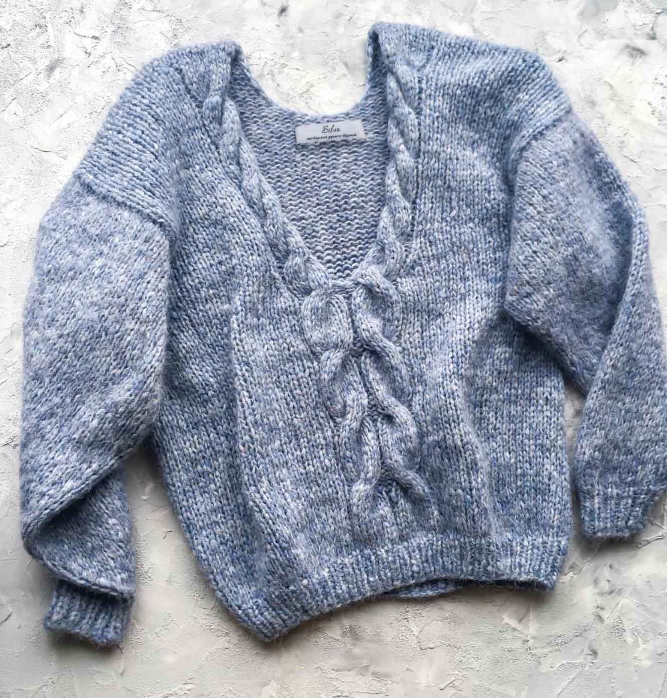 Данный свитер является укороченным, поэтому вы можете по желанию добавить еще 1-2 перехлеста кос.