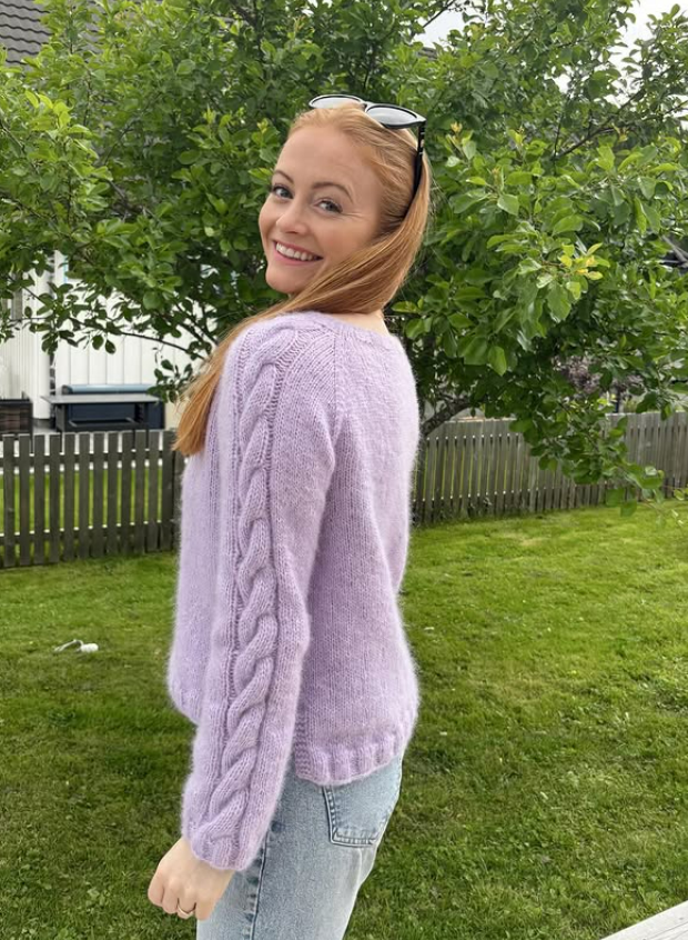 Worked in the round on circular needle from mid back, work top down. After decrease for vent in the sides work front and back piece back and forth separately. Work sleeves in the round on a short circular needle/double pointed needles.