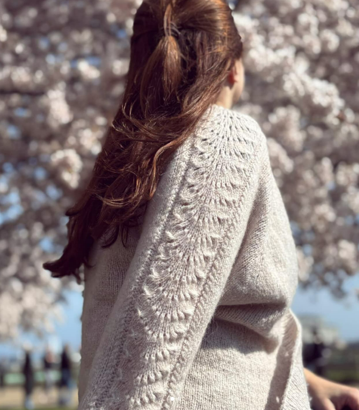 Work yoke back and forth on circular needle from mid front, work top down. AT THE SAME TIME increase V-neck and raglan. Now divide yoke for body and sleeves. Work body back and forth on circular needle, top down. Work sleeves in the round on double pointed needles/short circular needle, top down. At the end work a neck edge/band around the opening on jacket.